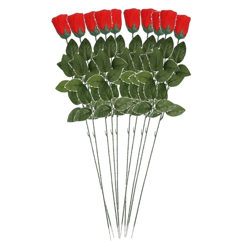 10x Rode Rosa/roos kunstbloem 60 cm. Voordelige onderhoudsvrije rode Rosa/roos kunstroos kunstbloem om los in een vaas te zetten of om in combinatie met andere kunstbloemen tot een boeket te binden. Materiaal: kunststof/plastic, polyester. Formaat steelbloem: 60 cm lang. Nepplanten nepbloemen woondecoraties voor in huis. Cadeau voor je geliefde op Valentijnsdag. U ontvangt 10 stuks.