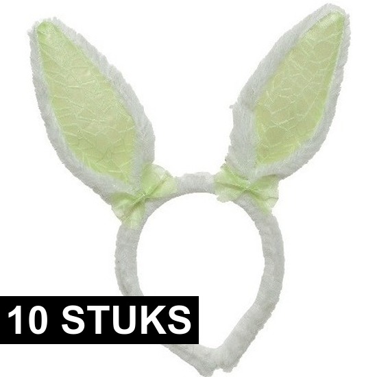 10x Wit/groen konijnen/hazen oren diadeempjes 24 cm –