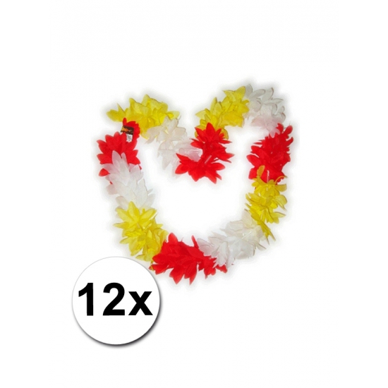 12 Hawaii kransen Brabant. Leuke Hawaii kransen in de kleuren van rood/geel/wit. Voordelige tropische Hawaii kransen in de kleuren van Brabant.