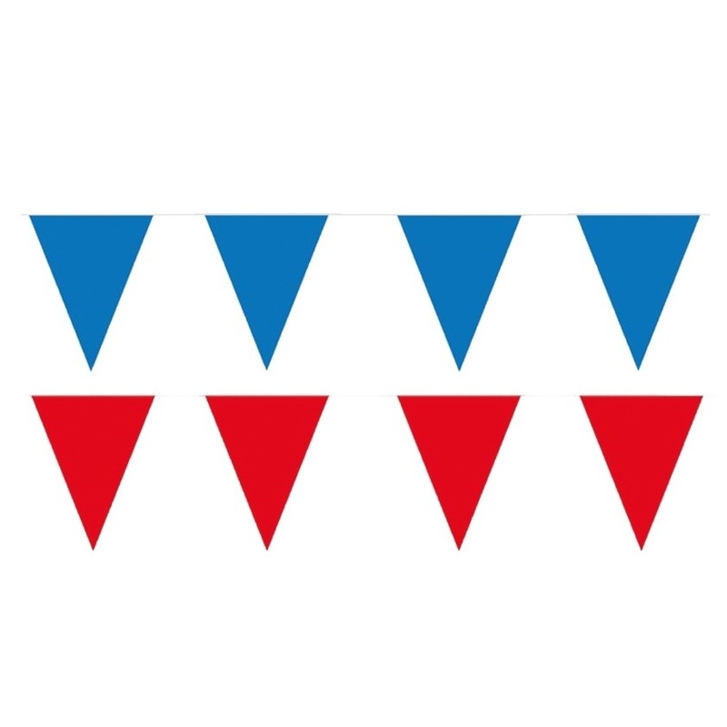 Rode en blauwe vlaggetjes pakket. Totaal 120 meter vlaggetjes. Materiaal: plastic. , Dit artikel bestaat uit:, 6x Party Vlaggenlijn puntvlaggetjes – kunststof – blauw – 10 meter – Slinger – versiering, 6x Party Vlaggenlijn puntvlaggetjes – kunststof – rood – 10 meter – Slinger – versiering