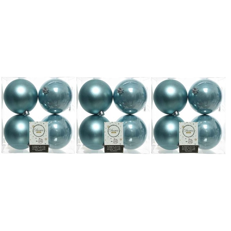 12x IJsblauwe kerstballen 10 cm kunststof mat/glans. Set van 4x ijsblauwe onbreekbare kerstballen met zilveren ophanglintjes. De ene helft is glanzend en de andere helft zijn matte kerstballen. Kerst versiering/decoratie voor het optuigen van uw kerstboom. Onze kerstballen worden standaard geleverd met ophangdraadjes maar wij adviseren u om onze kerstbalhaakjes mee te bestellen (niet inbegrepen). Materiaal: kunststof/plastic. Formaat diameter: 10 cm. Kleur: ijsblauw. Serie: Christmas Arctic blue. U ontvangt 3 setjes van 4 stuks.