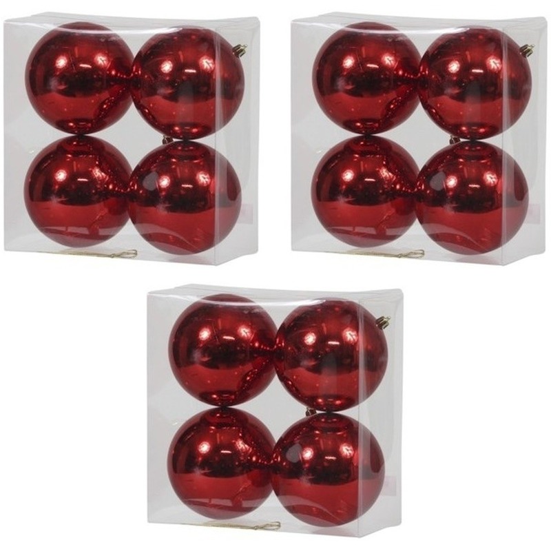 12x Rode kerstballen 12 cm kunststof glans. Set van 12x rode onbreekbare kerstballen met ophanglintjes. Kerst versiering/decoratie voor het optuigen van uw kerstboom. Onze kerstballen worden standaard geleverd met ophangdraadjes maar wij adviseren u om onze kerstbalhaakjes mee te bestellen (niet inbegrepen). Materiaal: kunststof/plastic. Formaat diameter: 12 cm. Kleur: rood. Serie: Christmas Red Shiny. U ontvangt 3 verpakkingen van 4 stuks.