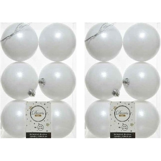 12x Winter witte kerstballen 8 cm kunststof mat. Set van 12x winter witte onbreekbare kerstballen met zilveren ophanglintjes. Kerst versiering/decoratie voor het optuigen van uw kerstboom. Onze kerstballen worden standaard geleverd met ophangdraadjes maar wij adviseren u om onze kerstbalhaakjes mee te bestellen (niet inbegrepen). Materiaal: kunststof/plastic. Formaat diameter: 8 cm. Kleur: winter wit. Serie: Christmas Winter White. U ontvangt 2 verpakkingen van 6 stuks.