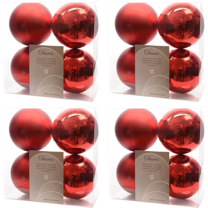 16x Kerst rode kerstballen 10 cm kunststof mat/glans. Set van 16x kerst rode onbreekbare kerstballen met gouden ophanglintjes. De ene helft is glanzend en de andere helft zijn matte kerstballen. Kerst versiering/decoratie voor het optuigen van uw kerstboom. Onze kerstballen worden standaard geleverd met ophangdraadjes maar wij adviseren u om onze kerstbalhaakjes mee te bestellen (niet inbegrepen). Materiaal: kunststof/plastic. Formaat diameter: 10 cm. Kleur: kerst rood. Serie: Christmas Red. U ontvangt 4 verpakkingen van 4 stuks.