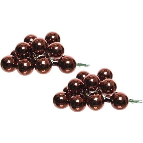 20x Mahonie bruine/roodbruine glazen mini kerstballen stekers/kerststekers 2,5 cm glans. Twee bosjes van mahonie bruine glanzende kerstballen instekertjes aan ijzerdraad die u per stuk los kunt halen en kunt gebruiken als decoratie of om uw eigen kerststukje mee te maken/knutselen. Kerststukjes maken onderdelen. Materiaal: glas. Formaat diameter: 2,5 cm. Kleur: mahonie bruin. Serie: Christmas Rosewood Brown Glass. U ontvangt 4 extra kerstballetjes ivm eventuele transport schade.