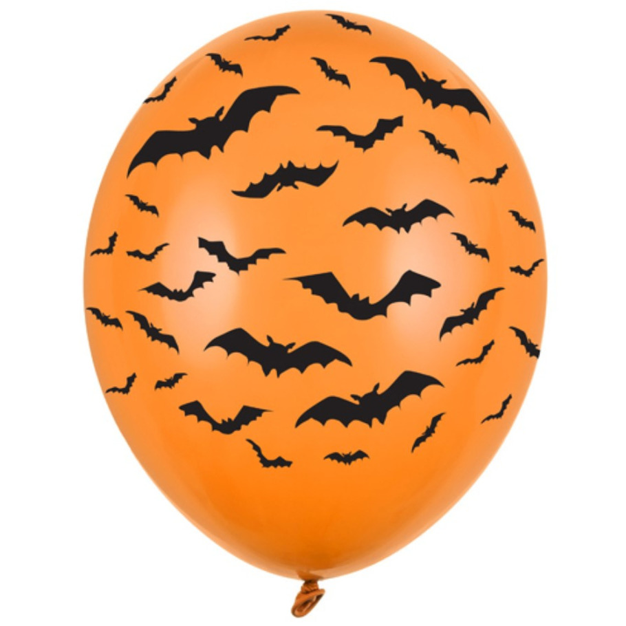 24x Oranje/zwarte Halloween ballonnen 30 cm met vleermuizen print. 4 Zakjes met 6 mat oranje ballonnen in Halloween thema met zwarte all-over vleermuizen print. De ballonnen zijn geschikt om te vullen met lucht of helium. Heliumtanks zijn los verkrijgbaar in onze webshop.