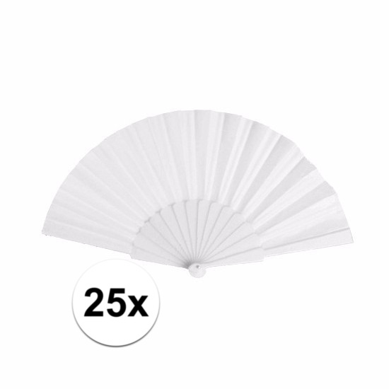 25 stuks Zomerse Spaanse bruiloft/huwelijk/trouwerij handwaaiers in het wit van 23 cm. Handige uitvouwbare waaier voor directe verkoeling!