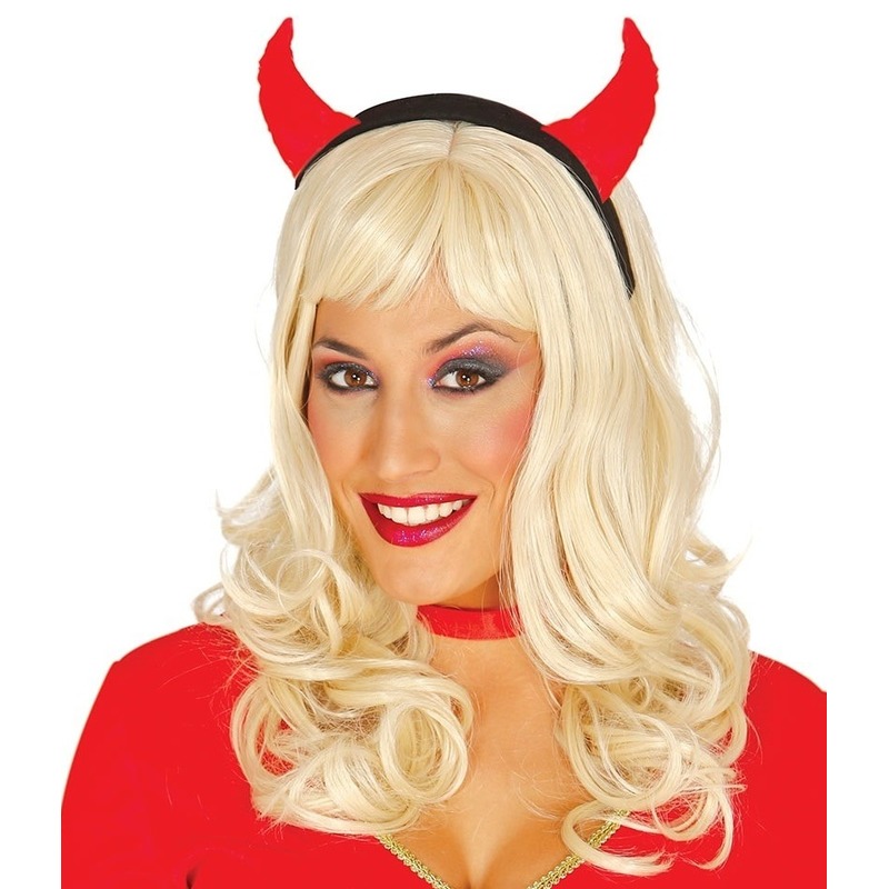 2x Zwarte diademen/haarbanden met rode zachte duivelsoortjes voor dames. De diadeem is gemaakt van plastic. Horror/Halloween verkleed accessoire. U ontvangt 2 stuks.