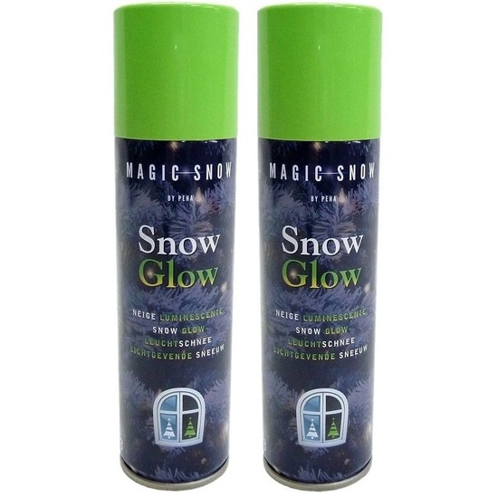 2x Glow in the dark sneeuw spray 150 ml. Deze gave sneeuwspray gloeit op in het donker! U ontvangt 2 spuitbussen. Inhoud: ongeveer 150 ml. Spuitsneeuw/frostspray kerstdecoratie met lichtgevend effect.