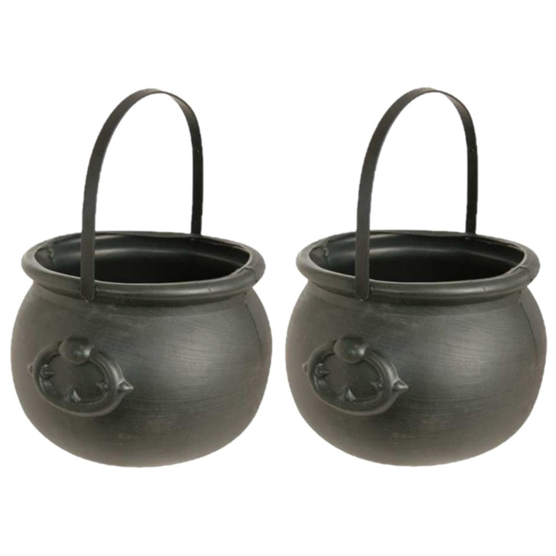 2x Heksenketel zwart 15 x 20 cm. Deze decoratieve zwarte heksenketel heeft een formaat van 15 x 20 cm. Materiaal: kunststof. Halloween decoratie/versiering. U ontvangt 2 stuks.