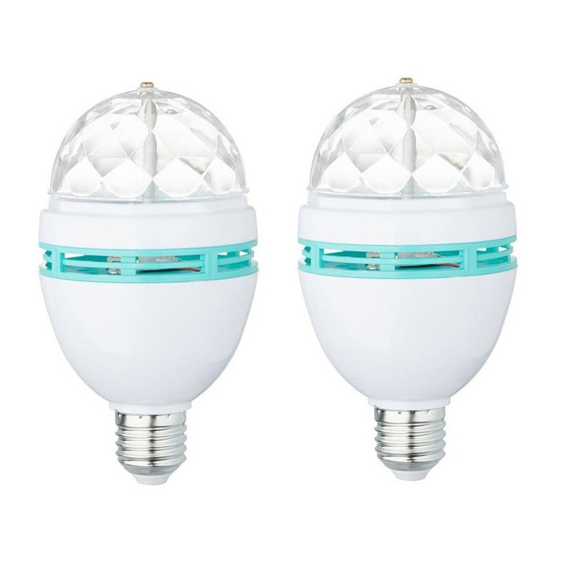 2x Stuks disco lampen/lichten E27 fitting 360 graden roterend. Deze disco party lamp heeft 30 kleuren en past op een E27 fitting. De roterende bol hoeft alleen in de fitting te worden gedraaid. De lamp roteert waardoor het een heel leuk effect heeft.