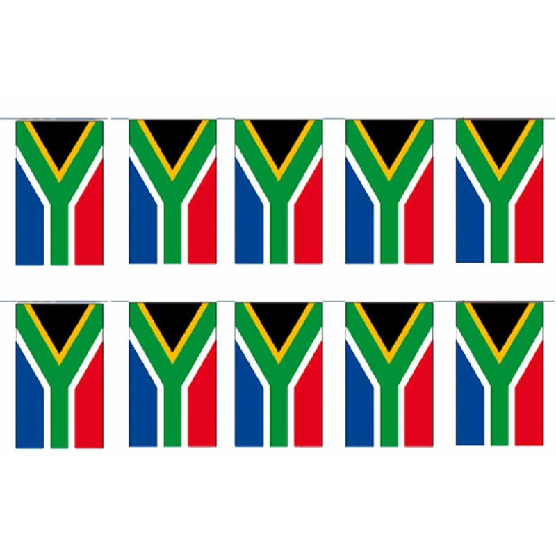 2x papieren feest thema slinger Zuid-Afrikaanse vlag. Formaat vlaggetjes: Formaat: 12 x 24 cm en de slinger is 4 meter lang. De slinger is brandvertragend. Op de vlaggenlijn zitten 14 vlaggetjes. Zuid-Afrika landen thema supporter feestartikelen en versieringen.