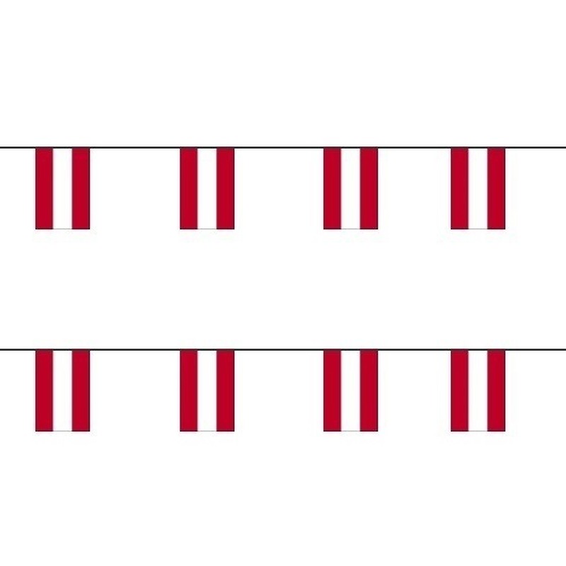 2x Papieren slingers Oostenrijk. Formaat vlaggetjes: 12 x 24 cm en de slinger is 4 meter lang. De Oostenrijkse slingers zijn brandvertragend. Op de vlaggenlijnen zitten 14 vlaggetjes. U ontvangt 2 stuks. Oostenrijkse vlag landen thema decoratie.