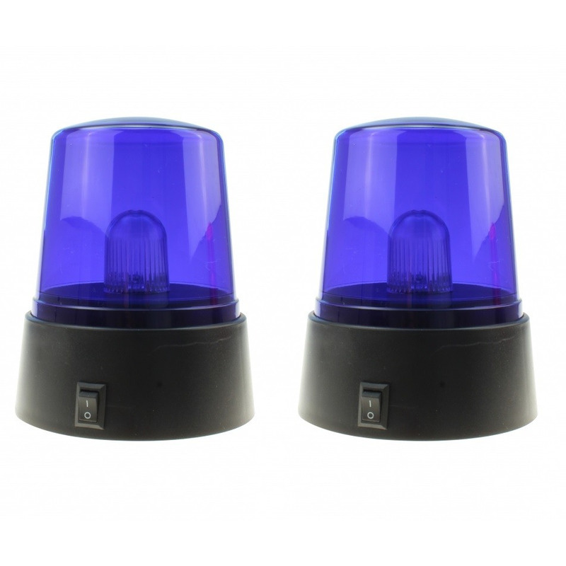 2x Politie zwaailamp/zwaailicht met blauw LED licht 11 cm. De kleine zwaailampen zijn ca. 11 cm hoog en 9,5 cm breed. De lampen zijn voorzieningen voor wandmontage en werkt op 3 AA batterijen. Niet inbegrepen. Kleur: Blauw. Kinder politie speelgoed artikelen. U ontvangt 2 stuks.