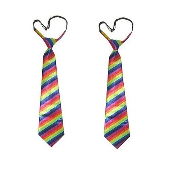 2x Stropdas regenboog. Gestreepte stropdassen met alle kleuren van de regenboog. Deze regenboog stropdassen zijn uitermate geschikt als verkleed accessoire tijdens carnaval, themafeest of gay pride.
