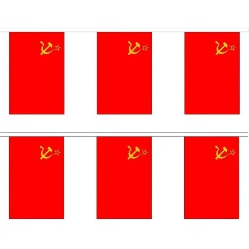 2x Polyester vlaggenlijnen USSR 3 meter. Stoffen vlaggenlijn van USSR voor binnen en buiten gebruik. Deze luxe Sovjet Unie vlaggenlijn is 3 meter lang en heeft 10 vlaggetjes van 22,5 x 15 cm. U ontvangt 2 stuks. Feestartikelen landen versiering Sovjet Unie vlaggenlijnen.