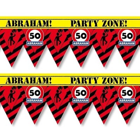 Deze 50 Abraham party afzetlinten met vlaggenlijnpuntjes zijn enkelzijdig bedrukt. Materiaal: plastic. Lengte: 12 meter. Feestversiering/feestdecoratie afzetlinten/markeerlinten feestartikelen voor het verAbrahamdagsfeest van een 50 jarige. Danger zone party tape mini vlaggenlijn. U ontvangt 2 stuks.