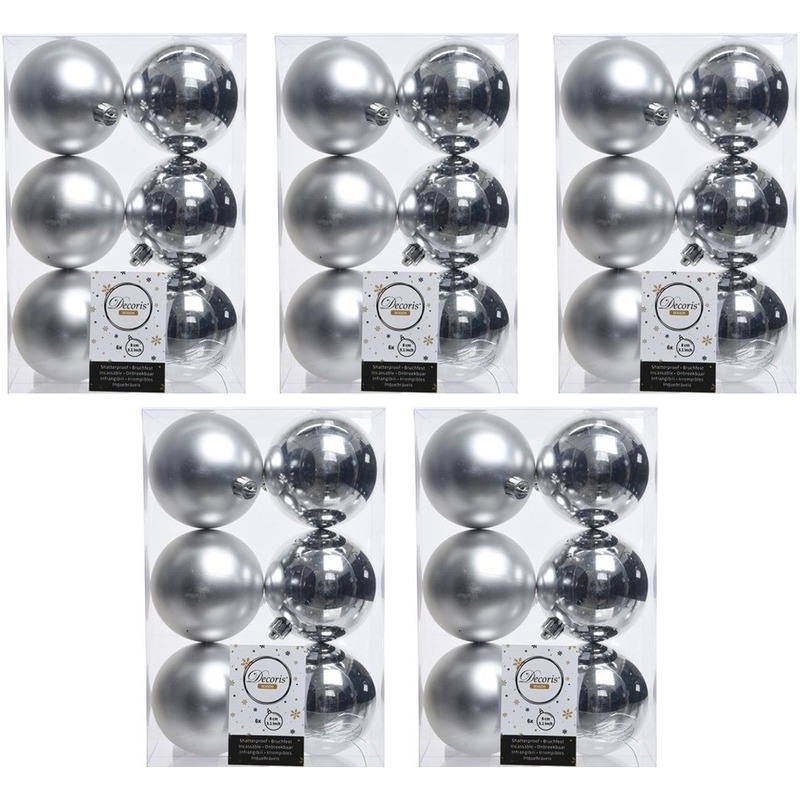 30x Kunststof kerstballen glanzend/mat zilver 8 cm kerstboom versiering/decoratie –
