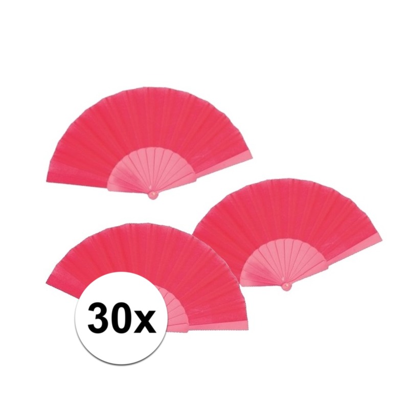 30 stuks Zomerse Spaanse handwaaiers fuchsia roze 43 cm. Handige uitvouwbare waaier voor directe verkoeling!