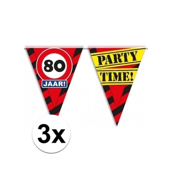 3x 80 jaar vlaggenlijn waarschuwingsbord 10mtr. Deze vlaggenlijn heeft 8 meter aan vlaggetjes en aan beide zijden 1 meter lint. De vlaggenlijnen zijn geschikt voor buiten. Materiaal: plastic. U ontvangt 3 losse vlaggenlijnen.