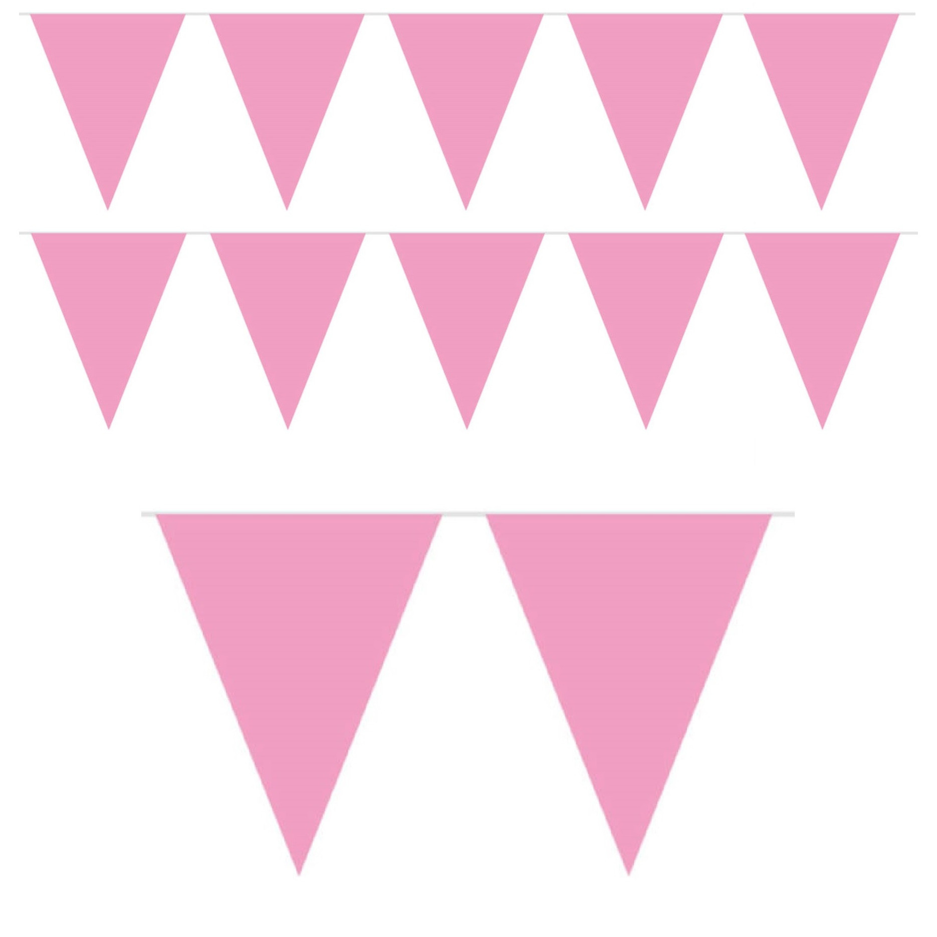 3x Mini vlaggenlijn/slinger versiering baby roze. De lengte van deze slinger is in totaal ca. 3,5 meter. De lengte van vlag tot vlag is ongeveer 2,75 meter. De hoogte van de vlaggetjes is ca. 14 cm. Materiaal: Plastic. U ontvangt in totaal 3 stuks.