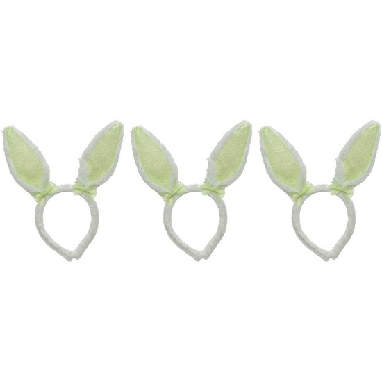 3x Feestartikelen konijn/haas diademen met oren 24 cm wit/groen verkleedaccessoire