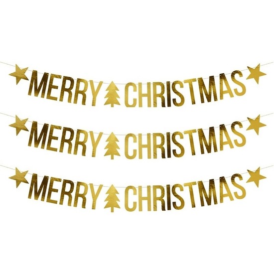 3x Gouden Merry Christmas DIY Kerst banners slingers 20 x 175 cm