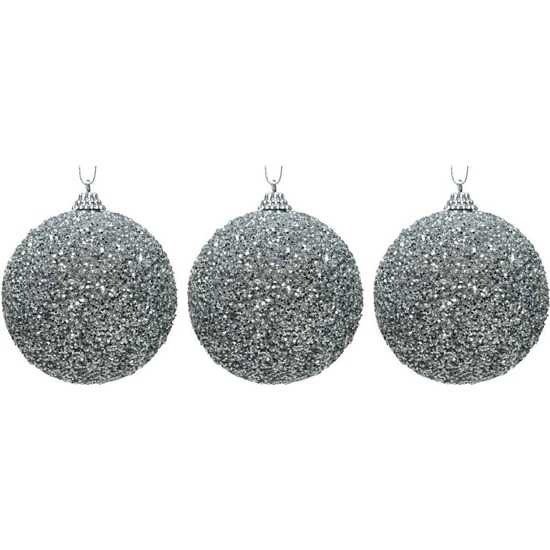 3x Zilveren glitter kralen kerstballen 8 cm kunststof. 3x Zilveren onbreekbare kerstballen met glitter kraaltjes. De kerstballen worden geleverd met zilveren ophanglintje. Kerst versiering/decoratie voor het optuigen van uw kerstboom. Onze kerstballen worden standaard geleverd met ophangdraadjes maar wij adviseren u om onze kerstbalhaakjes mee te bestellen (niet inbegrepen). Materiaal: foam, kunststof/plastic. Formaat diameter: 8 cm. Kleur: zilver. Serie: Christmas Light Silver. U ontvangt 3 stuks.