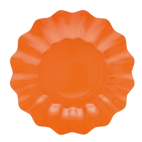 Diepe kartonnen bordjes oranje 27 cm. 40 stuks kartonnen borden in oranje kleur. De bordjes hebben een diameter van ongeveer 27 cm. Oranje thema wegwerpborden van karton. Tafeldecoratie feestartikelen en versiering.
