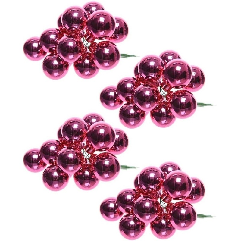 40x Fuchsia roze glazen mini kerstballen stekers/kerststekers 2 cm glans. Vier bosjes van fuchsia roze glanzende kerstballen instekertjes aan ijzerdraad die u per stuk los kunt halen en kunt gebruiken als decoratie of om uw eigen kerststukje mee te maken/knutselen. Kerststukjes maken onderdelen. Materiaal: glas. Formaat diameter: 2 cm. Kleur: fuchsia roze. Serie: Christmas Flashing Pink Glass. U ontvangt 8 extra kerstballetjes ivm eventuele transport schade.