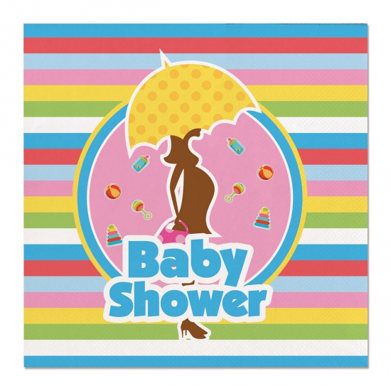 40x Babyshower themafeest servetten gekleurd 25 x 25 cm. Gekleurde servetten met een mooie babyshower print. Een pakje bevat 20 servetjes, u ontvangt 2 pakjes. Formaat opgevouwen: 12,5 x 12,5 cm, indien uitgevouwen: 25 x 25 cm. Materiaal: 3-laags papier. Thema: Babyshower babypartijtje/babyfeestje feestartikelen babyshower thema wegwerp servetten tafeldecoraties.