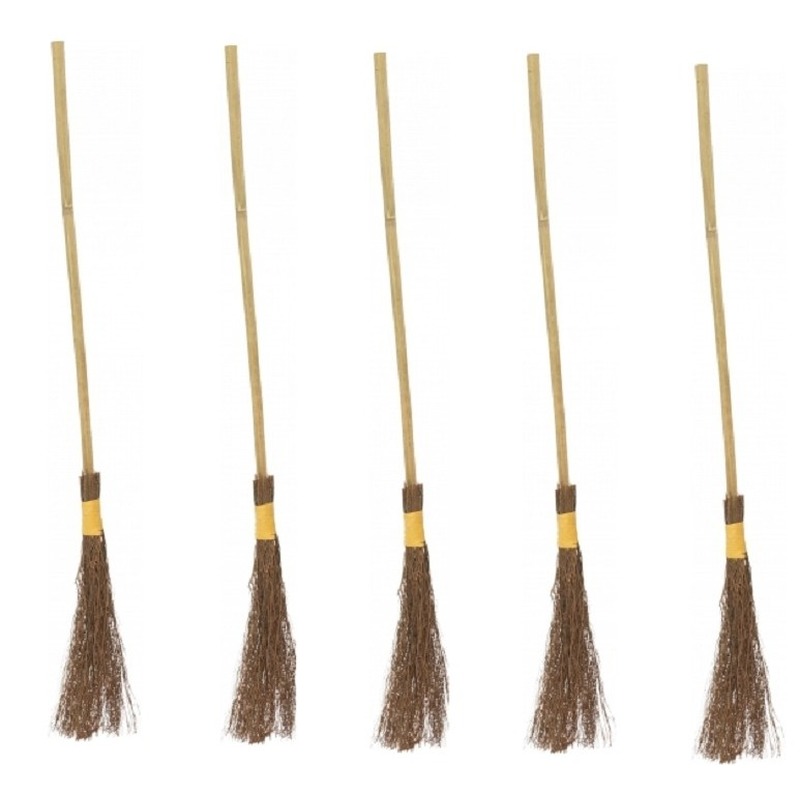 5x authentiek uitziende heksen bezem volwassenen. Lengte: ca. 100 cm. Een leuke verkleed accessoire voor bij een heksenkostuum of ter decoratie met Halloween. Heksen accessoire/decoratie bezem van hout. U ontvangt de bezem ingeschoven voor transport, deze dient u iets uit te trekken na ontvangst.