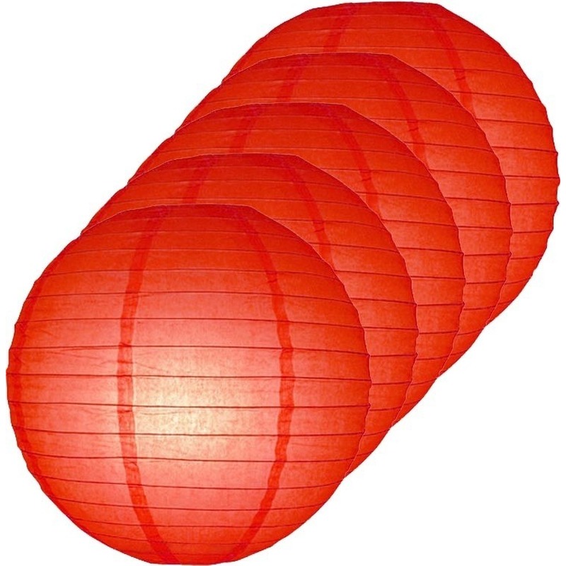 5x Luxe bol lampionnen rood 25 cm. Bol lampionnen van ongeveer 25 cm groot. Voor een zeer leuk effect gebruik deze lampionnen in combinatie met een LED lampje. In de lampionnen zit een haakje waar je het LED lampje aan kunt hangen. De lampionnen zijn niet brandvertragend. U ontvangt 5 stuks.