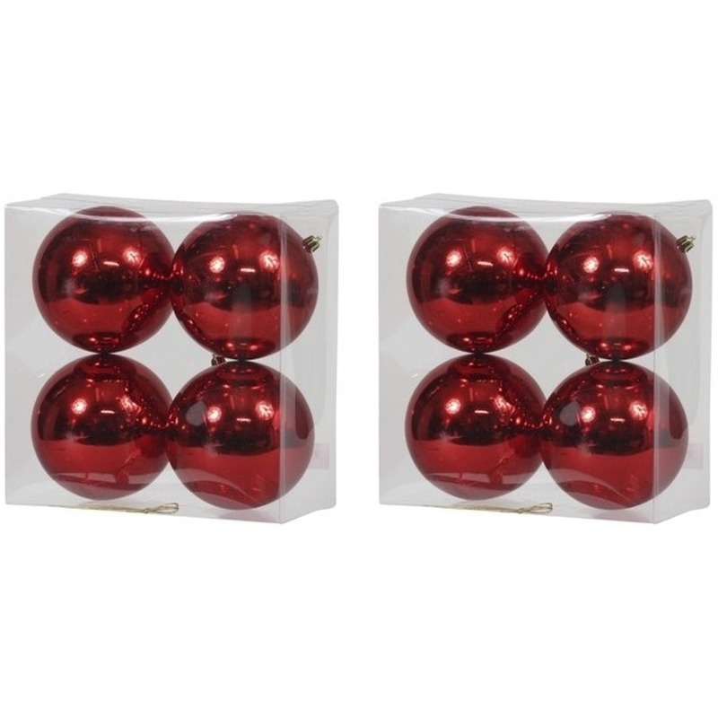 8x Rode kerstballen 12 cm kunststof glans. Set van 8x rode onbreekbare kerstballen met ophanglintjes. Kerst versiering/decoratie voor het optuigen van uw kerstboom. Onze kerstballen worden standaard geleverd met ophangdraadjes maar wij adviseren u om onze kerstbalhaakjes mee te bestellen (niet inbegrepen). Materiaal: kunststof/plastic. Formaat diameter: 12 cm. Kleur: rood. Serie: Christmas Red Shiny. U ontvangt 2 verpakkingen van 4 stuks.