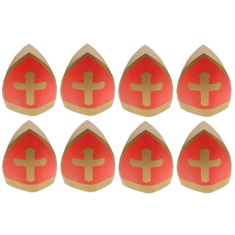 Set van 8 Sinterklaas kinder mijters van karton. Leuke Sinterklaas mijters van karton voor kinderen. Deze Sint mijters zijn te groot voor kinderen onder de 10 jaar.