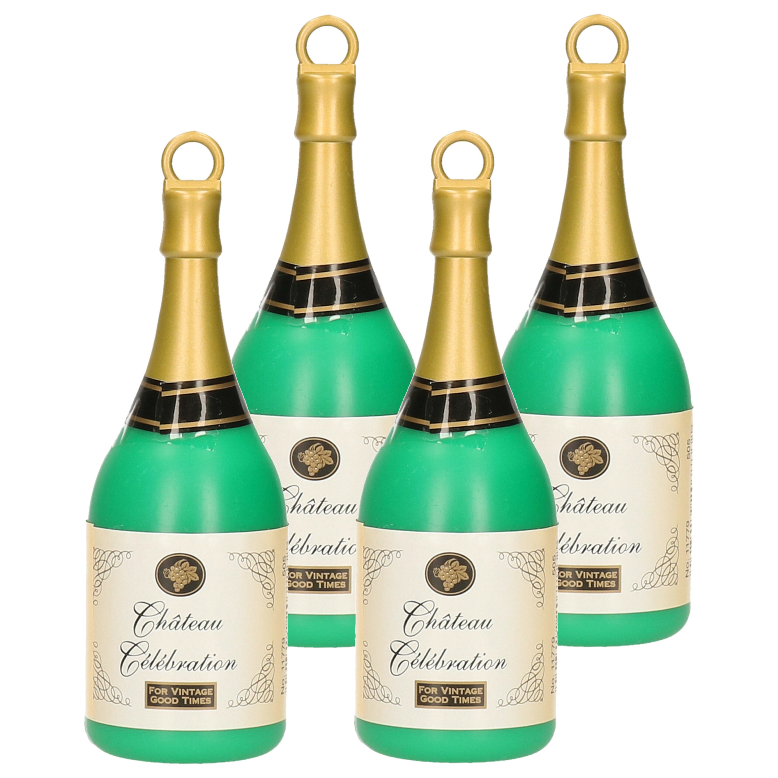4x ballon gewicht in de vorm van een champagnefles. Voorkom wegvliegende ballonnen en voeg een feestelijke touch toe met dit stijlvolle ballongewicht in de vorm van een champagnefles! Dit handige ballongewichtje van ongeveer 163 gram houdt heliumballonnen stevig op hun plek en is perfect voor elke feestelijke gelegenheid.