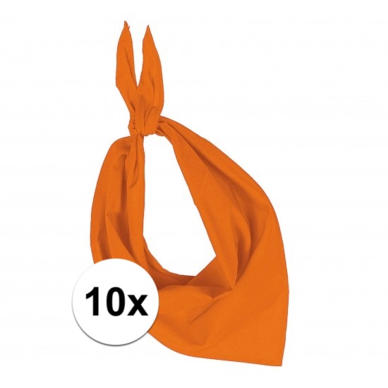 10x bandana/hals zakdoek in de kleur oranje voor volwassenen en kinderen. Deze bandana/zakdoek is op verschillende manieren te dragen, u kunt deze namelijk als shawl of bandana knopen. Afmeting: 83 x 62 x 62 cm (driehoek). Materiaal: 80% polyester, 20% katoen. Kwaliteit: 95 grams.