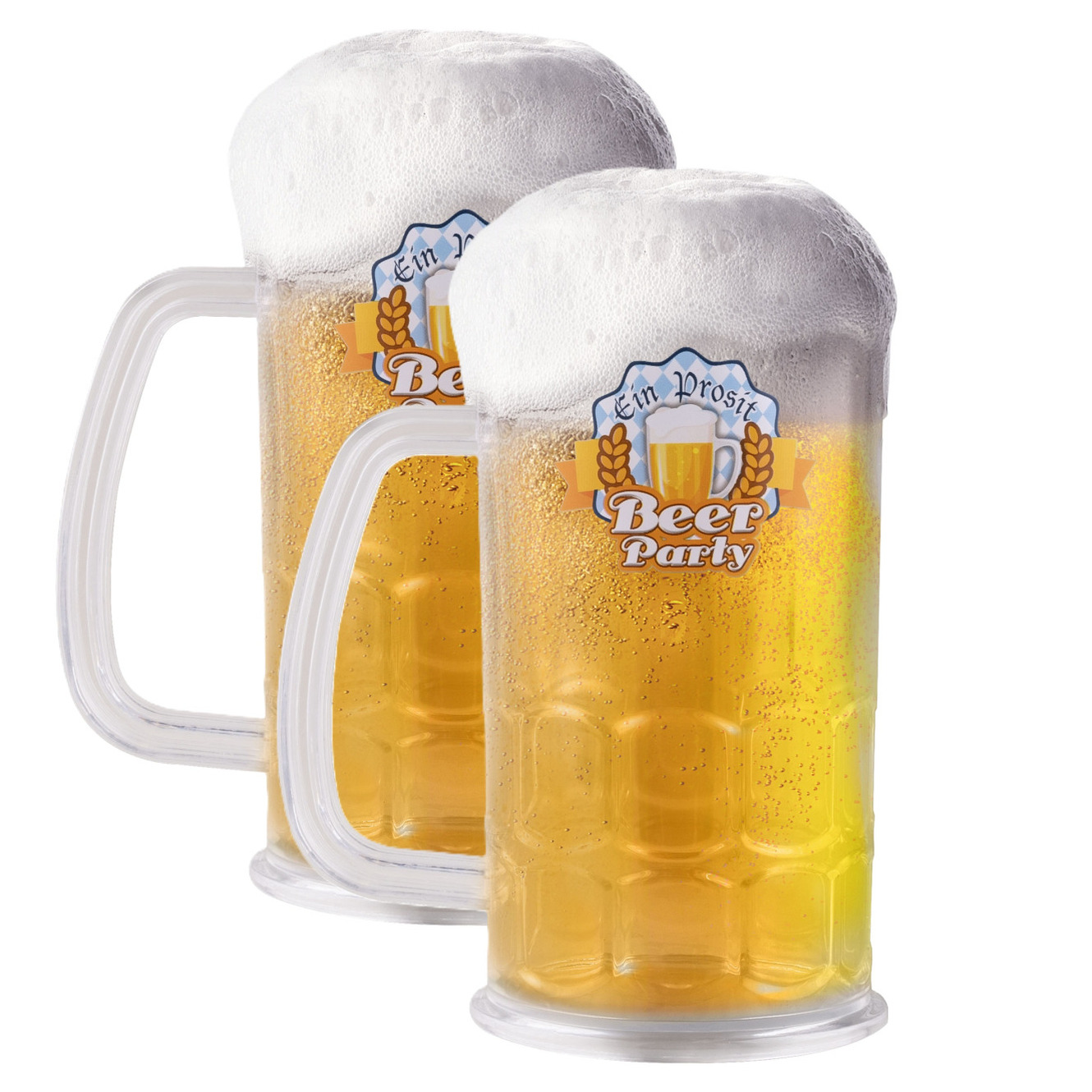 Halve liter bierpullen, set van 2x stuks. Geniet van je favoriete bieren met deze transparante bierpul van 500 ml! Deze plastic bierpul is ideaal voor het Oktoberfest of andere feestelijke gelegenheden. Gemaakt van stevig hard kunststof, is deze bierpul perfect voor gebruik op festivals, in de horeca of thuis.