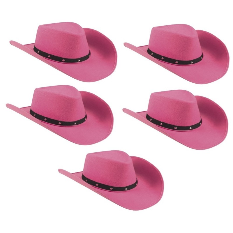 5x verkleed cowboyhoed roze voor volwassenen. Ga voor een stoere en stijlvolle look met deze cowboyhoed Wichita! Ideaal voor carnaval, themafeesten of als opvallend accessoire bij een western- of explorer-thema.