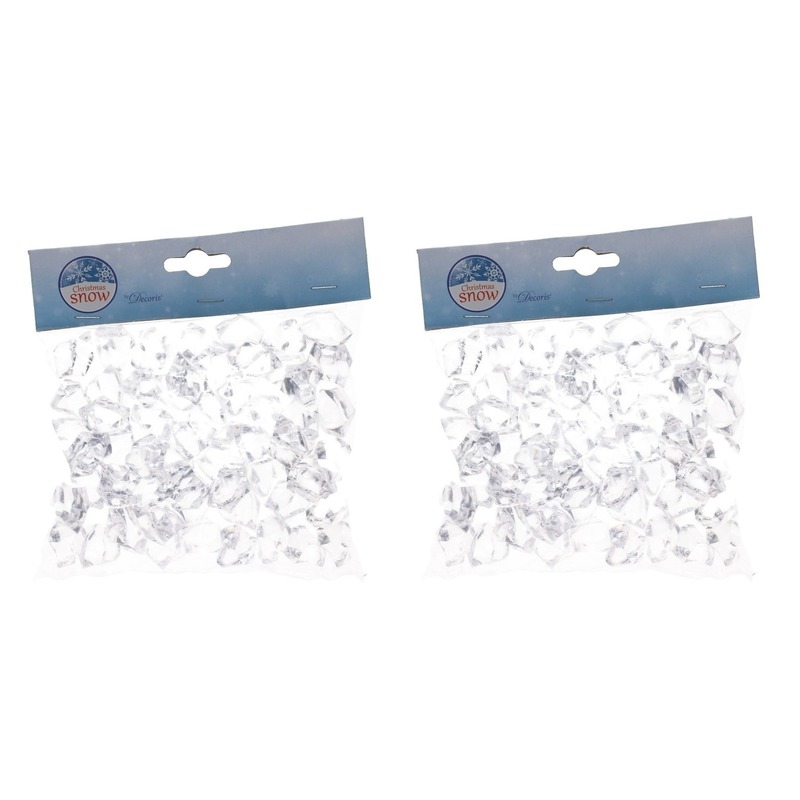 2x kunst ijsblokjes decoratie bij een winter of apres ski themafeest. Cre?er een ijskoude, sprankelende sfeer met deze transparante Decoris ijsblokjes van kunststof. Perfect als decoratie voor een winter themafeest, kersttafel of etalage, geven deze glanzende nepiejsklontjes een stijlvolle en koele uitstraling aan elk decor.