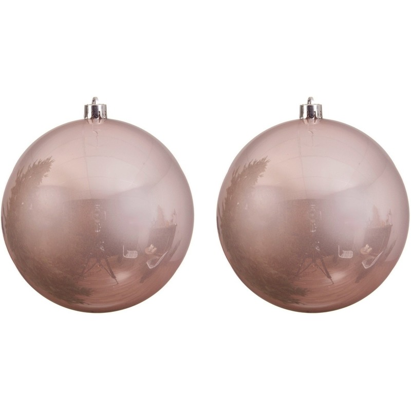 2x groot formaat kerstbal in de kleur lichtroze. Met een indrukwekkende diameter van 14 cm en een glanzende afwerking, is deze kunststof kerstbal perfect voor het maken van een opvallend en feestelijk accent in je huis. Deze veelzijdige kerstbal is ideaal voor diverse toepassingen. Hang hem op aan een lint aan het plafond, aan de deur of raam voor een warm welkom, of gebruik hem om een grote kerstboom te versieren. Voor een stijlvolle presentatie aan de deur kun je ook gebruik maken van speciale deurhangers voor kerstkransen, waaraan je deze grote kerstbal kunt ophangen.
