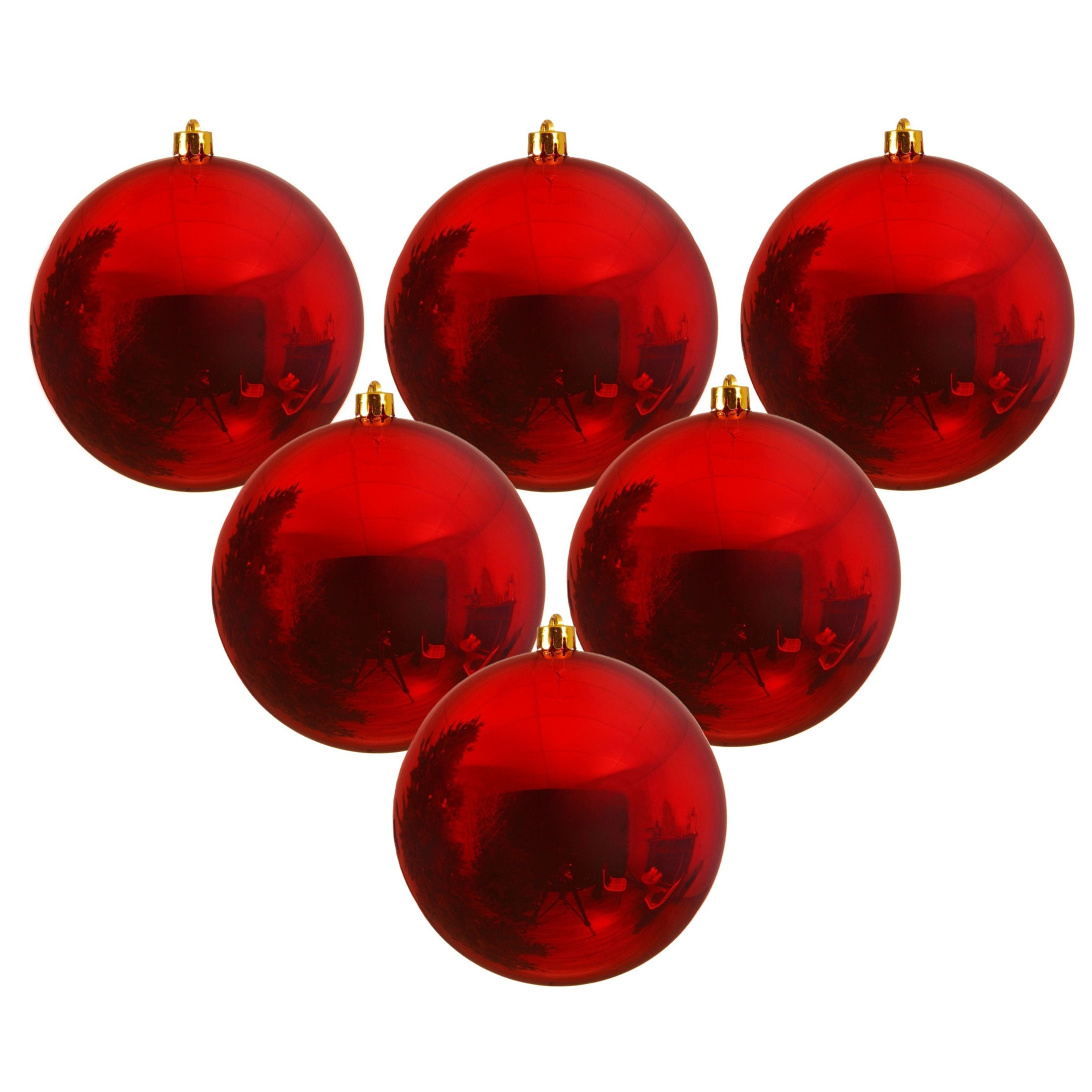 6x groot formaat kerstbal in de kleur rood. Met een indrukwekkende diameter van 14 cm en een glanzende afwerking, is deze kunststof kerstbal perfect voor het maken van een opvallend en feestelijk accent in je huis. Deze veelzijdige kerstbal is ideaal voor diverse toepassingen. Hang hem op aan een lint aan het plafond, aan de deur of raam voor een warm welkom, of gebruik hem om een grote kerstboom te versieren. Voor een stijlvolle presentatie aan de deur kun je ook gebruik maken van speciale deurhangers voor kerstkransen, waaraan je deze grote kerstbal kunt ophangen.