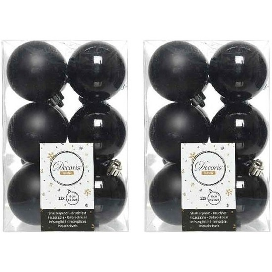 Zwarte kerstballen 6 cm kunststof mat/glans. Voeg een vleugje moderne elegantie toe aan je kerstdecoratie met deze set van 24x stuks zwarte kerstballen. Met een diameter van 6 cm en een mix van glanzende en matte afwerkingen, bieden deze onbreekbare kerstballen een stijlvolle en verfijnde uitstraling. De set bevat zilveren ophanglintjes voor een gemakkelijke bevestiging aan je kerstboom. Gemaakt van kunststof/plastic, zijn deze kerstballen bestand tegen breken, wat ze ideaal maakt voor elk huishouden.
