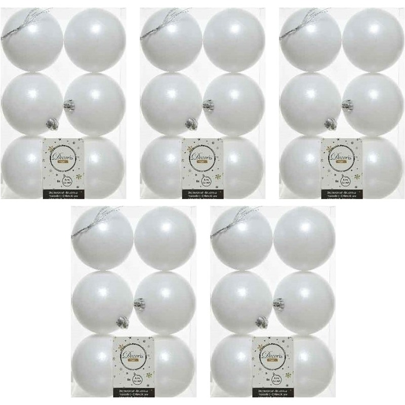 30x Winter witte kerstballen 8 cm kunststof mat. Set van 30x winter witte onbreekbare kerstballen met zilveren ophanglintjes. Kerst versiering/decoratie voor het optuigen van uw kerstboom. Onze kerstballen worden standaard geleverd met ophangdraadjes maar wij adviseren u om onze kerstbalhaakjes mee te bestellen (niet inbegrepen). Materiaal: kunststof/plastic. Formaat diameter: 8 cm. Kleur: winter wit. Serie: Christmas Winter White. U ontvangt 5 verpakkingen van 6 stuks.