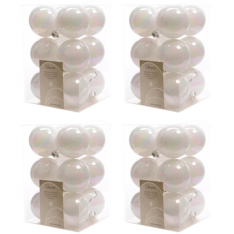 Parelmoer witte kerstballen 6 cm kunststof mat/glans. Voeg een vleugje moderne elegantie toe aan je kerstdecoratie met deze set van 48x stuks parelmoer wite kerstballen. Met een diameter van 6 cm en een mix van glanzende en matte afwerkingen, bieden deze onbreekbare kerstballen een stijlvolle en verfijnde uitstraling. De set bevat zilveren ophanglintjes voor een gemakkelijke bevestiging aan je kerstboom. Gemaakt van kunststof/plastic, zijn deze kerstballen bestand tegen breken, wat ze ideaal maakt voor elk huishouden.