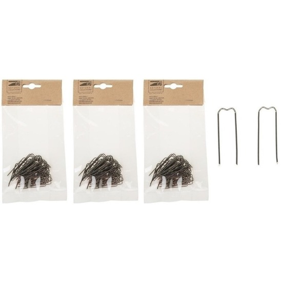 Steekkrammen klemmetjes. Maak je kerstdecoraties gemakkelijk en stevig vast met deze steekkrammen klemmen! Dit zakje bevat 150x stuks steekkrammen (ook bekend als patentkrammen), ideaal voor het bevestigen van materialen in kerststukjes, op kransen of andere decoratieve ondergronden.De krammen hebben een formaat van ongeveer 1.5 x 4 cm, zodat je ze kunt aanpassen aan je specifieke behoeften voor verschillende soorten kerstdecoraties. Of je nu verse takken, kunstmatige bloemen, of andere versieringen wilt bevestigen, deze klemmen zorgen voor een stevige en betrouwbare bevestiging.