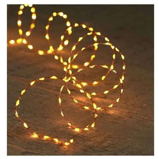 Koperdraad verlichting met sfeervolle lampjes die warm licht geven. Draadverlichting/sfeerverlichting.