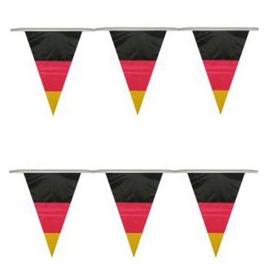 2x vlaggenlijn/puntvlaggetjes van Duitsland voor binnen en buiten gebruik. Lange vlaggenlijn met vlaggetjes in de kleuren van de Duitse vlag. 10 meter lang en gemaakt van kunststof. Laden thema feestartikelen en versieringen.