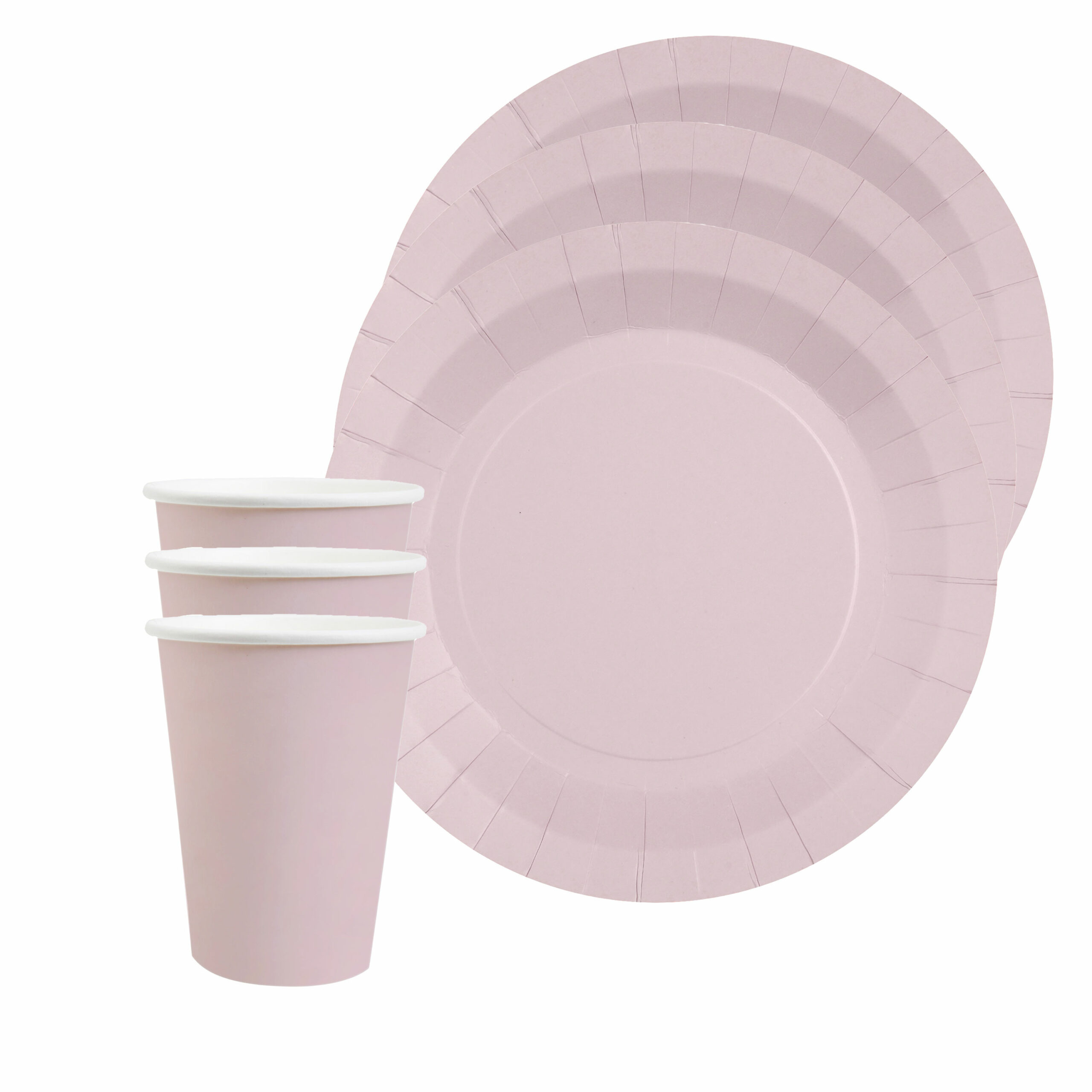 Santex feest/verjaardag/barbecue servies set bestaande uit 10x feest bordjes rond en 10x bekertjes in de kleur lichtroze. Wegwerp party bordjes en bekers van stevig karton, om ieder feestje mee compleet te maken.