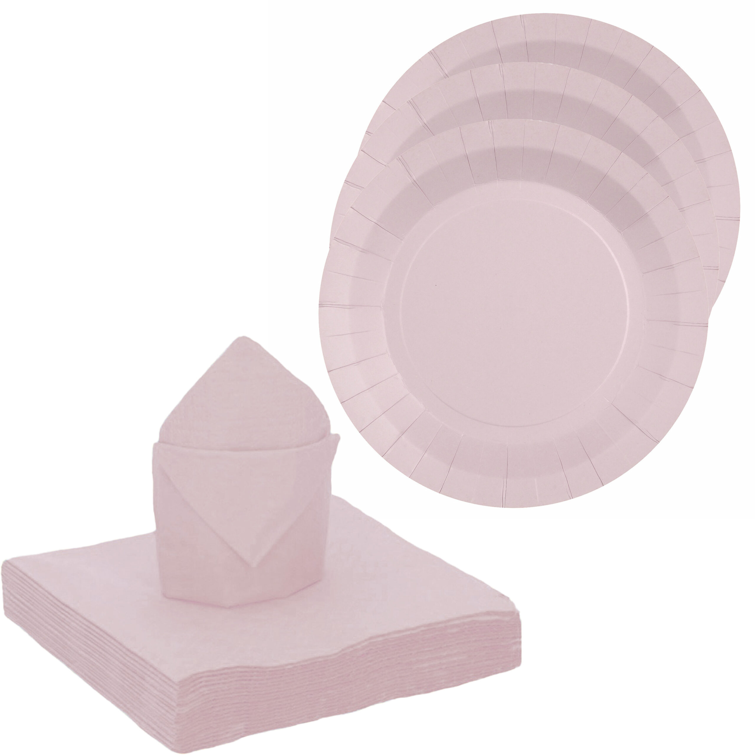 Feest/verjaardag servies set 20x gebaksbordjes/20x servetten – lichtroze – karton
